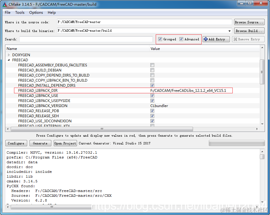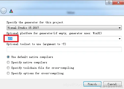 注意,一定要选择x64,因为依赖库FreeCADLibs_12.1.2_x64_VC15.1.7z是64位的。这个很重要,如果误选了32位,则会报错:
