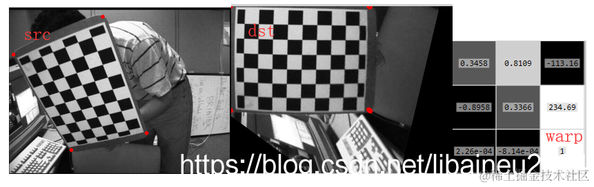 warpPerspective(src, dst, warpMatrix, dst.size(), INTER_LINEAR, BORDER_CONSTANT);