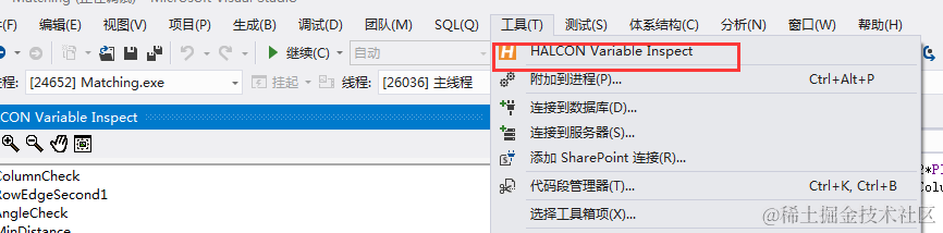 1.调出插件:选择 工具->HALCON Variable Inspect