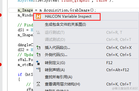 鼠标选择变量,然后右键选择HALCON Variable Inspect即可。