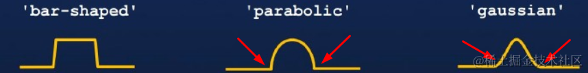 上图中,可以看出'parabolic'图示中,箭头指向的过渡处过渡陡峭(适合提取锐利的线条)。而'gaussian'图示中,箭头指向的过渡处过渡平滑(适合提取边缘平滑的线条)。