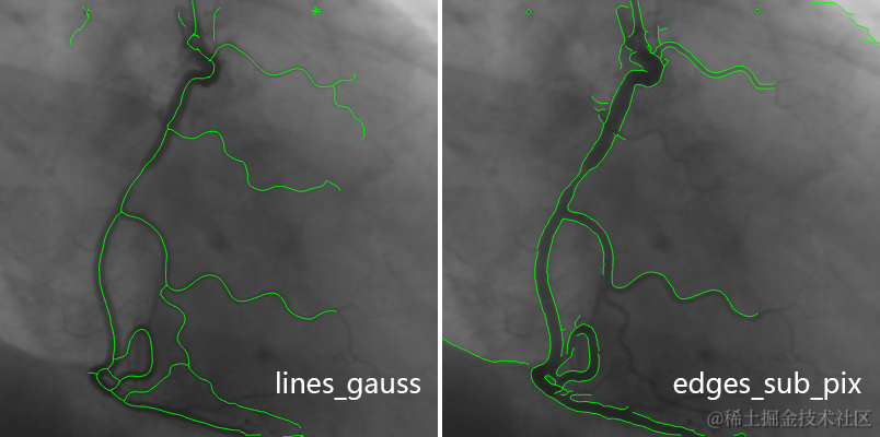 lines_gauss和edges_sub_pix 输出的XLD的区别对比如下: