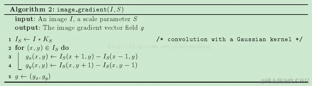 计算图像梯度的方法为算法2,如下图10所示,主要在水平和垂直两个方向上求取梯度: