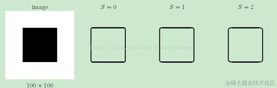 可见,当S取不同值是,边缘的粗细间隔是不一样的。S越大,边缘越粗些。