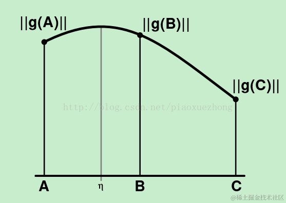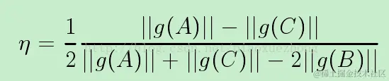 上图中,||g(A,B,C)||为三个垂直于边缘方向上的梯度模值,canny算法会选择模值最大的B点作为边缘点。但是,也可能在A和C之间存在点η ,在η 点处的梯度模值大于B点及AC之间的其他点,此时,η 点能更好地表示边缘。论文[3]给出了估计η 点以及计算η 点偏移量的方法,并给出η 的亚像素位置。