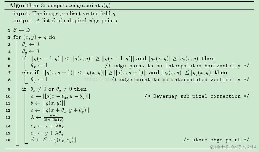 求取边缘点及亚像素校正过程,算法3的伪代码如下图11所示: