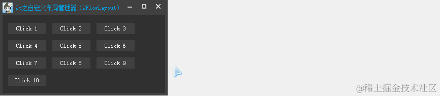 QFlowLayout,流动布局,实现了处理不同窗口大小的布局。根据应用窗口的宽度来进行控件放置的变化。