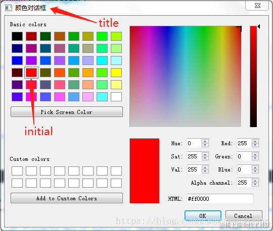 Qt官方自带的QColorDialog类提供了一个指定颜色的对话框部件。