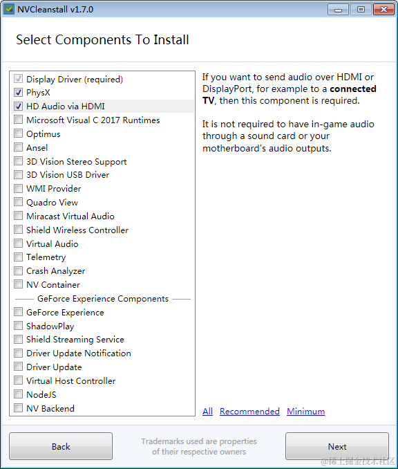 NVCleanStall可以定制安装,对于绝大部分人来说, 一个显卡驱动,一个PhysX驱动,HD Audio via HDMI已经够用了。