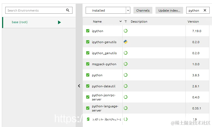 在【Environments】子菜单搜索“python”关键字,可以看到python的版本是3.8.5,已自动安装好。