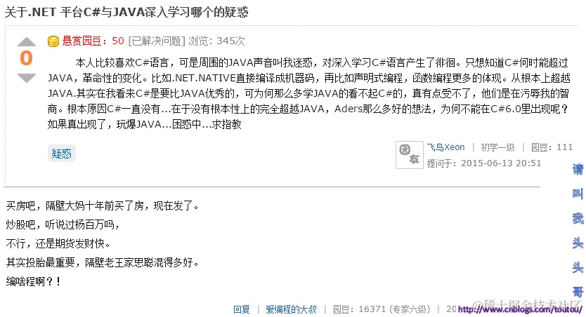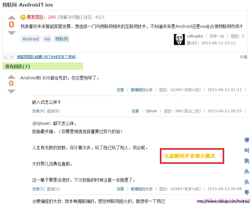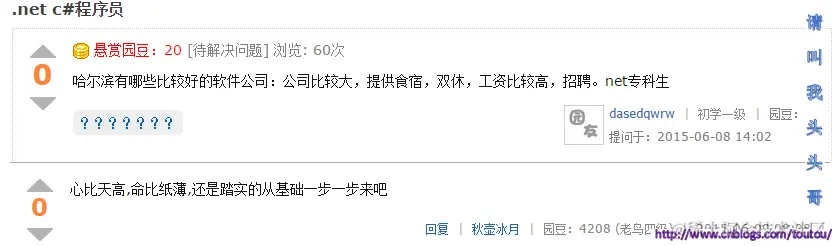 这里只是搜集了一些我平常在博问看到的神回复,真正属于博客园这个大家庭自己的神回复。 如果大家在博客园其他地方看到了可以私信我,或者直接更新在评论里,我会更新在这篇博客中,这篇博客将会作为连载博客, 不停的更新博客园中的神回复,让大家感受到在代码之余的欢乐。为了让更多的人知道,我们IT人也有可爱的一面。另外以下神回复部分,所见即所得,排名不分先后,将持续更新,让欢乐发酵。