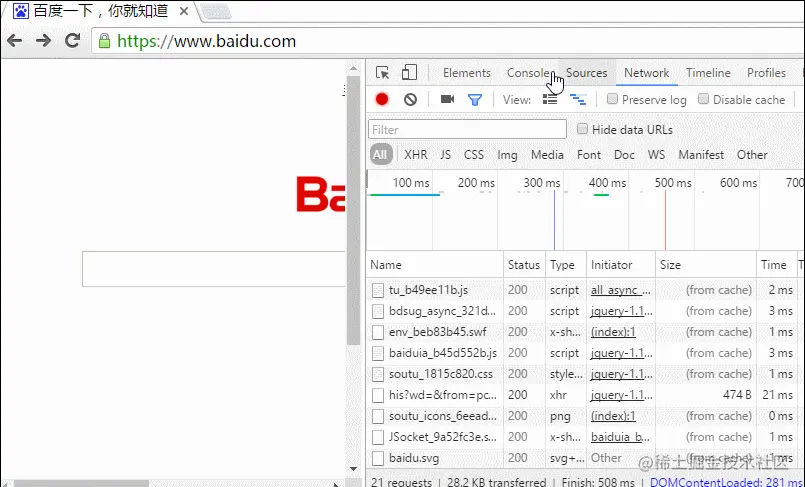 上图就是使用了缓存的栗子,在页面请求之后,web资源都被缓存了,在后面的重复请求中,可以看到许多资源都是直接从缓存中读取的(from cache),而不是重新去向服务器请求