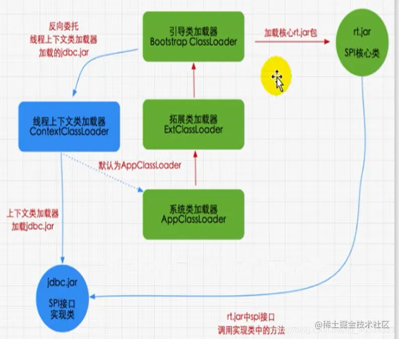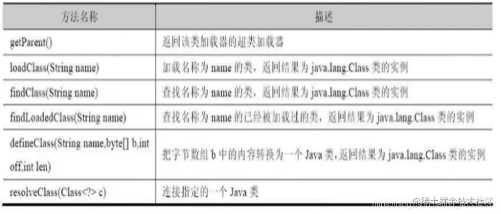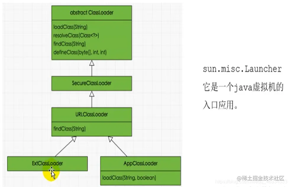 ClassLoader类,它是一个抽象类,其后所有的类加载器都继承自ClassLoader(不包括启动类加载器) 图解: