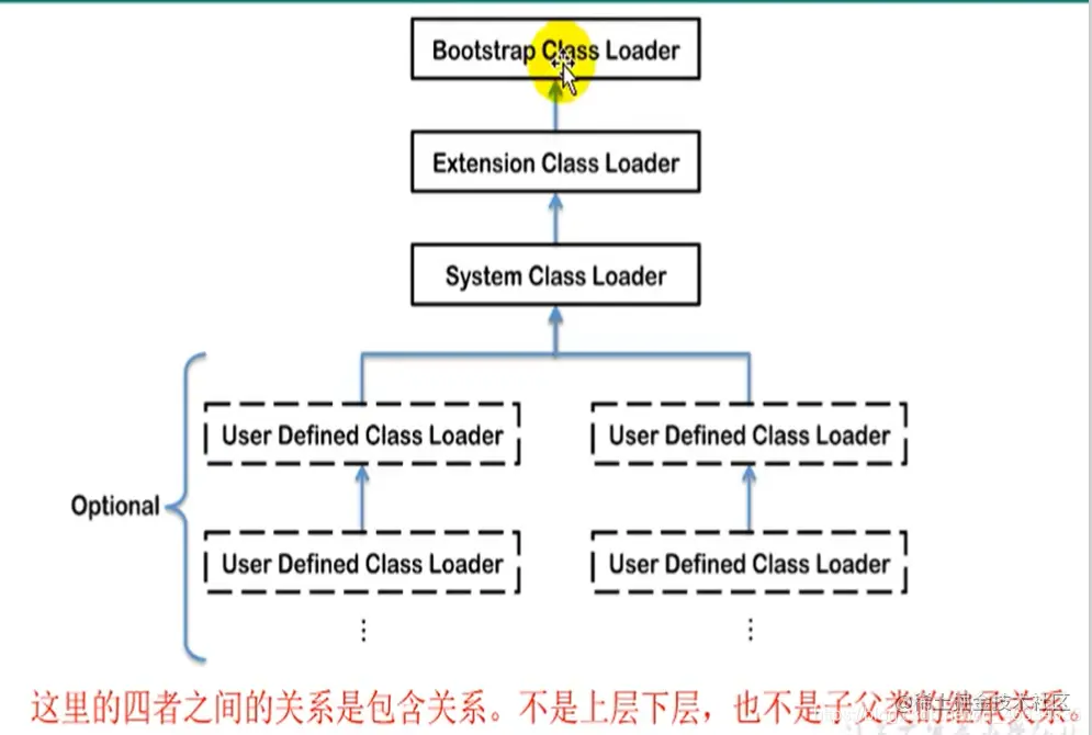 JVM支持两种类型的类加载器,分别为引导类加载器(BootstrapClassLoader)和自定义类加载器(User-Defined classLoader),从概念上来讲,自定义类加载器一般指的是程序中由开发人员自定义的一类类加载器,但是Java虚拟机规范却没有这么定义,而是将所有派生于抽象类ClassLoader的类加载器都划分为自定义类加载器。
