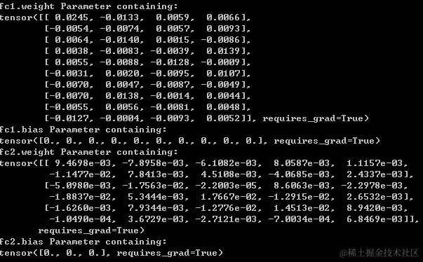 for name,param in net.named_parameters(): #使用model.named_parameters()可以获得相应层的名字的参数以及具体值
