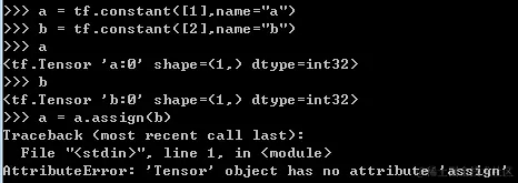 其中tf.assign()是将b的值赋值给a,因为a是常量,因此不可改变,就会报该错误,再看下面一个例子: