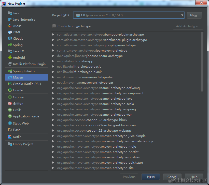 打开Idea,左上角菜单File --> New --> Project, 选择Maven项目,不使用模板,GroupId、ArtifactId和Projec name都填写idlewow即可,JDK选择1.8。(如没有1.8版本,可在前言章节中查看下载地址)