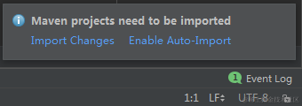 新建完毕后,因为是maven项目,IDE检测到pom.xml会在右下角弹出提示,如下图,选择”Enable Auto-Import",开启自动包下载,后面修改pom.xml后,按Ctrl+S保存即可自动更新包。