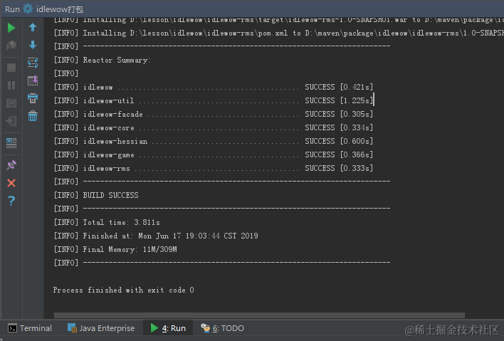 点击OK后,我们执行一遍。结果如下图,各模块均编译打包成功。