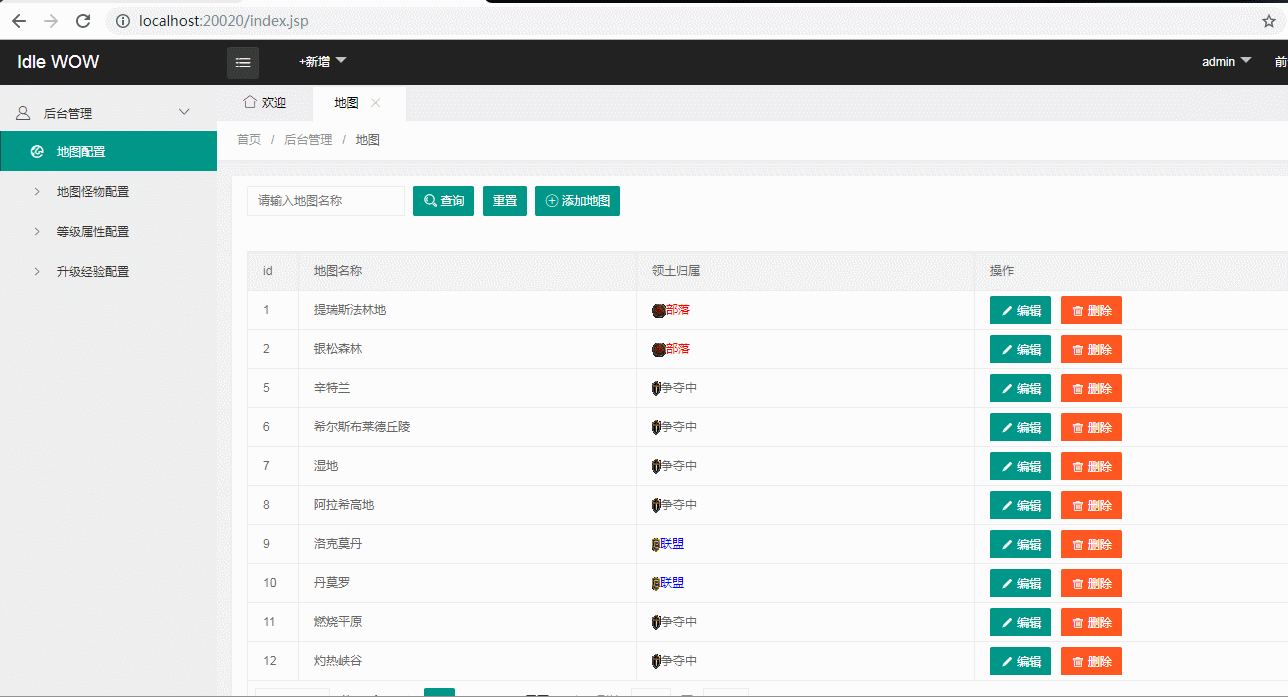 上一章我们将RMS后台管理系统搭建完毕,本章我们就在这个系统上实现录入游戏配置的功能。目前我们需要配置四项,每个等级的人物属性,每个等级的升级经验,游戏地图,地图中的怪物。下面我们以游戏地图配置为例子,实现对它的增删查改功能。