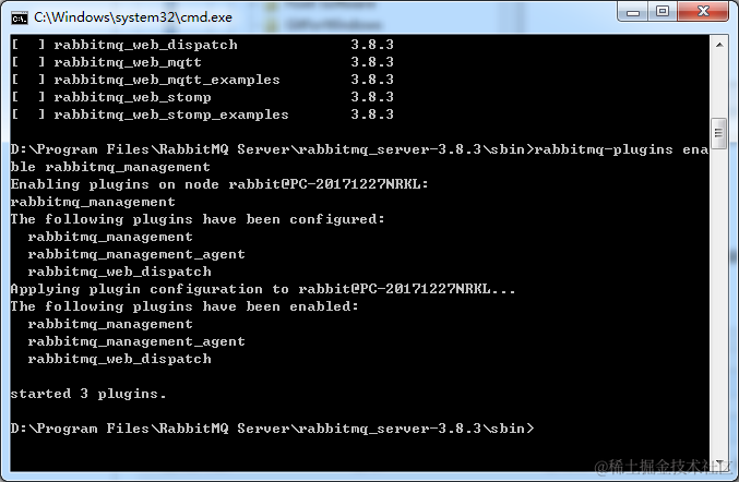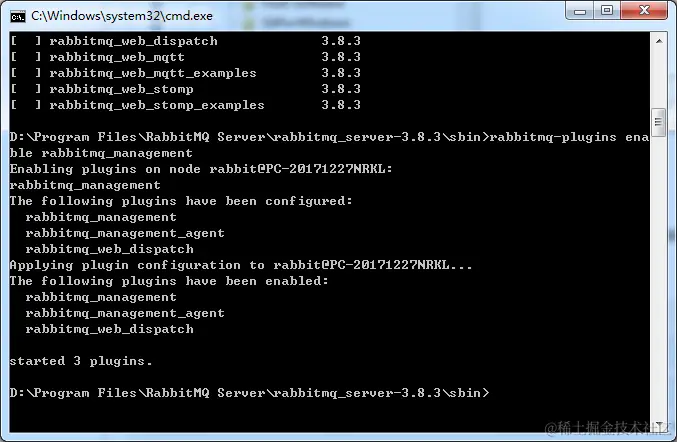 服务安装成功后,在rabbitMQ的sbin目录下,