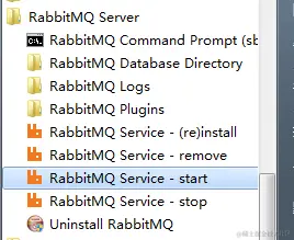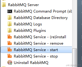 Rabbit安装成功后,开始菜单会列出一些快捷方式,可以点击执行,也可以使用命令行执行RabbitMQ的sbin目录下的批处理指令。