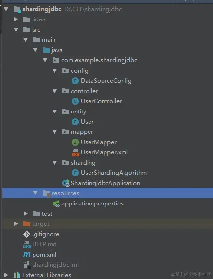 注意:这里因为是自己边看源码边配置,(sharding官网的例子可能是版本问题基本没法用,GitHub 我这里网络基本打不开),所以数据源和sharding大部分用java代码配置。了解配置原理后,也可以简化到 .yml / .properties 文件中。