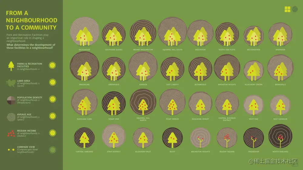 本文作者最终实现了一个基于网络的数据可视化平台,将公园和娱乐设施的定量数据转化为信息丰富、引人入胜的视觉效果,以帮助市民和城市官员做出更明智的选择。