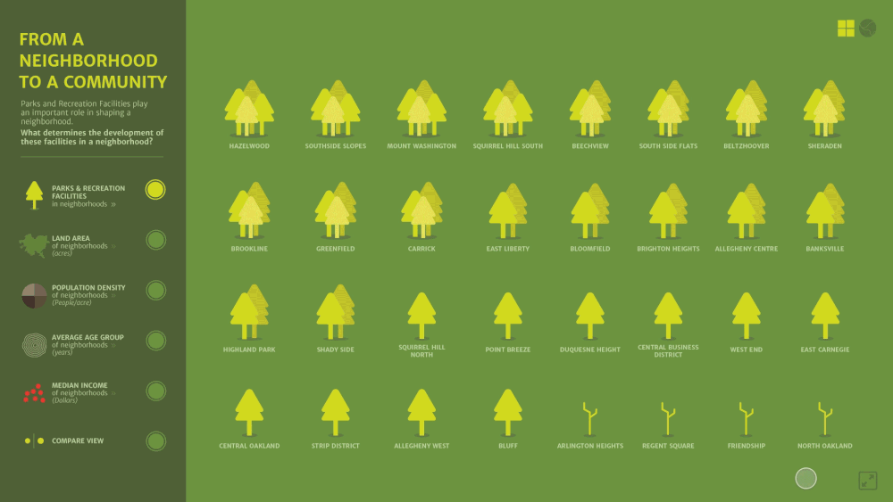 通过查阅可用的数据,我决定将人口统计数据与阿勒格尼县(Allegheny county)公园和娱乐设施的数据一起绘制地图,以探索两者之间的模式和关系。