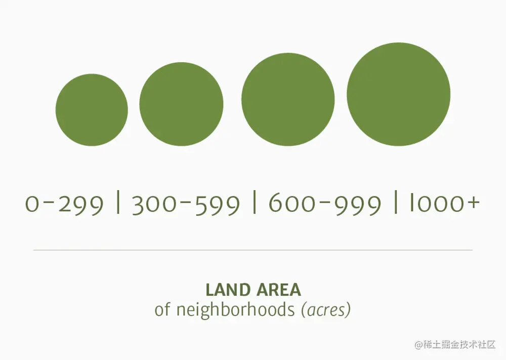 用比例尺表示面积。简单的视觉关系减少了观众的认知负荷。