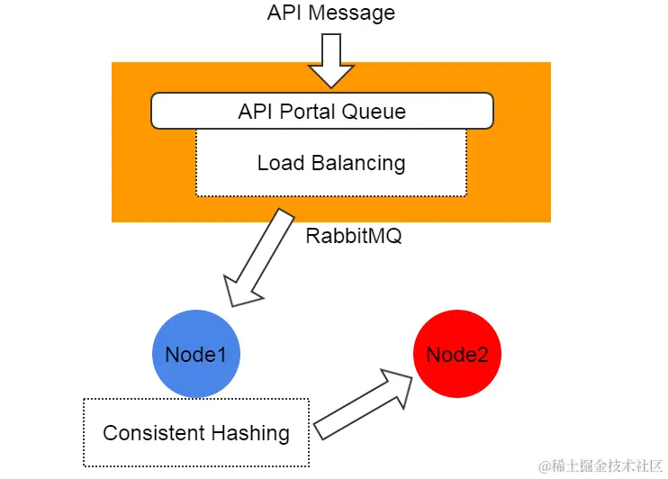 对 API 消息(例如:APIStartVmInstanceMsg)来说,有一个特殊的处理,它们总是发送一个众所周知的服务 ID api.portal 。在消息总线上,一个全局的队列被叫做 zstack.message.api.portal ,它被所有的管理节点 API 服务所共享,消息服务 ID api.portal 将会自动对其中的一个API服务做负载均衡,这个服务还会路由转发消息到正确的目的地,并使用了一致性哈希环(consistent hashing ring)。通过这种做法,ZStack 隐藏了来自 API 客户端消息路由转发的细节,并简化了写一个ZStack API 客户端的工作。