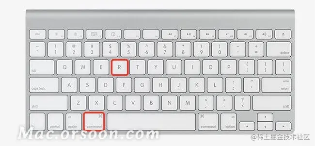 2.立即按住Command和R键,直到出现苹果图标或旋转的地球仪。