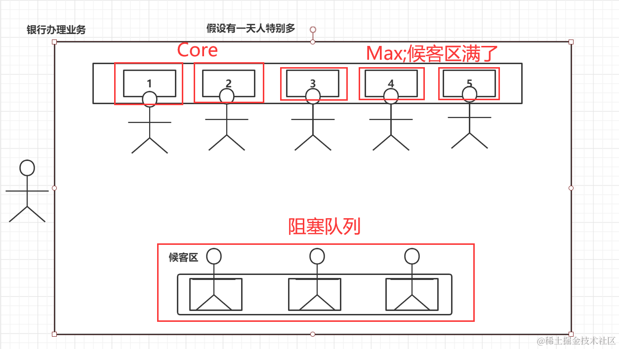 * new ThreadPoolExecutor.AbortPolicy() //银行满了,还有人进来,不处理这个人的,抛出异常