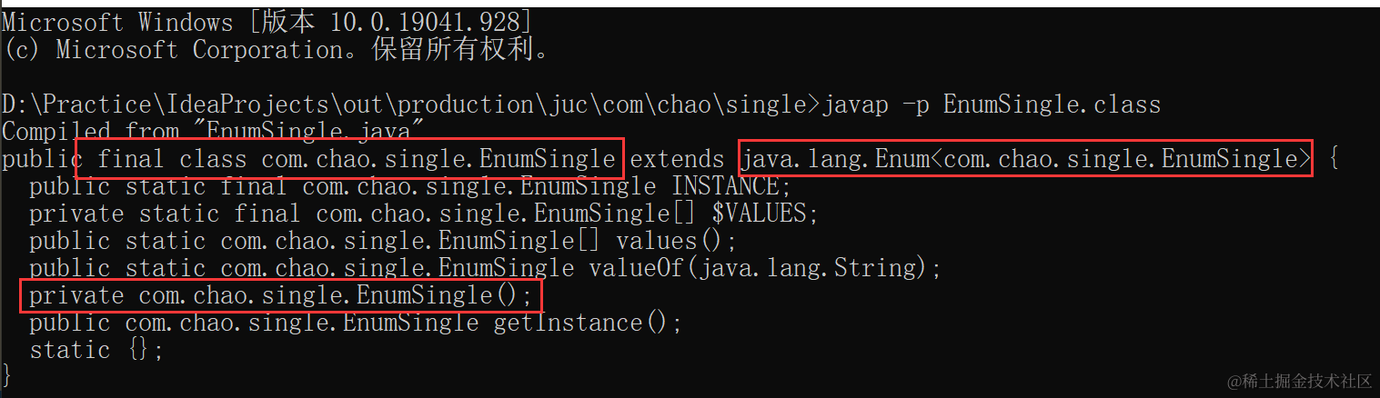 Constructor<EnumSingle> declaredConstructor = EnumSingle.class.getDeclaredConstructor(String.class,int.class);