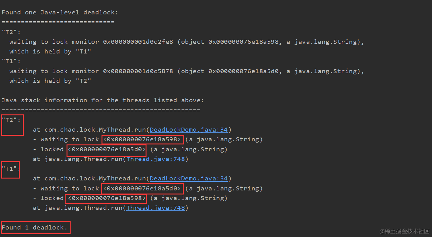 new Thread(new MyThread(lockA,lockB),"T1").start();
