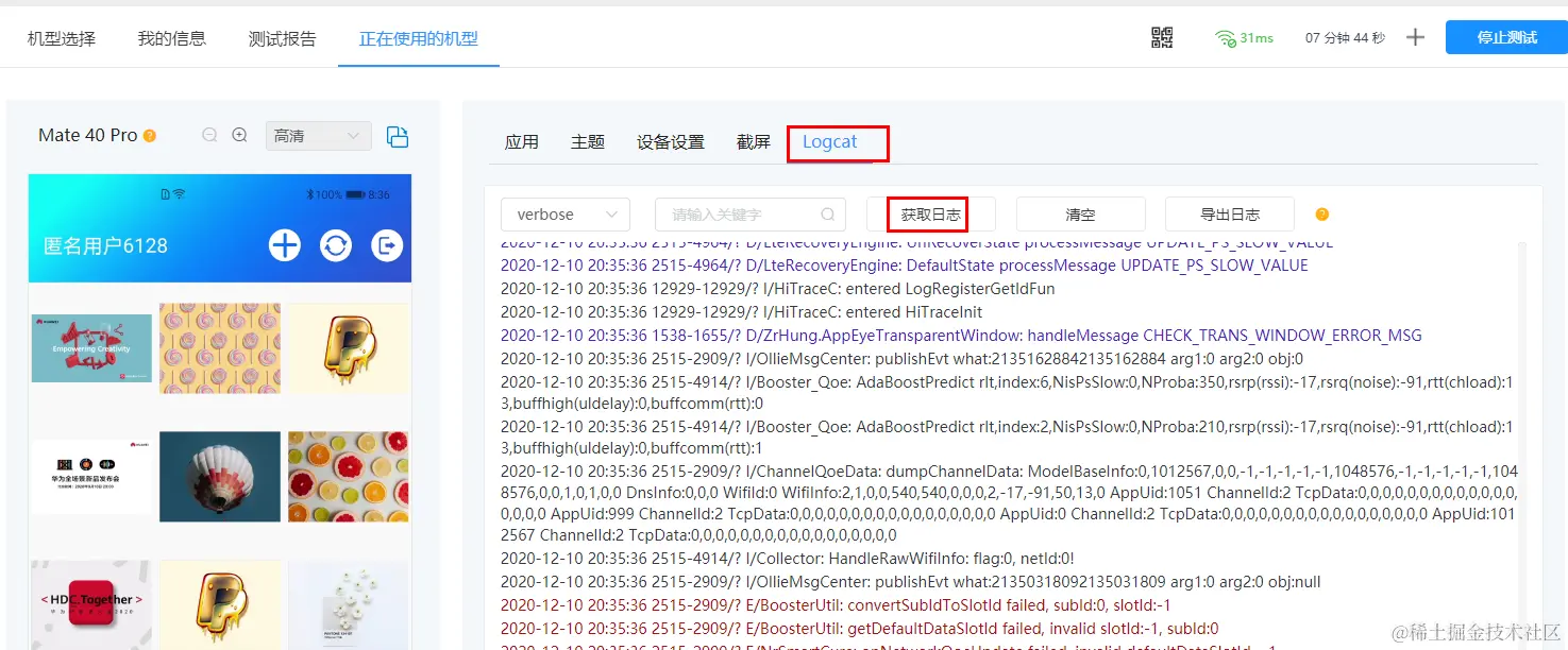 4、 Logcat**:**也就是系统日志,点击获取日志,就可以随时查看Android的系统日志,简直是开发测试的好帮手,所有的日志一目了然,还是随时进行导出。