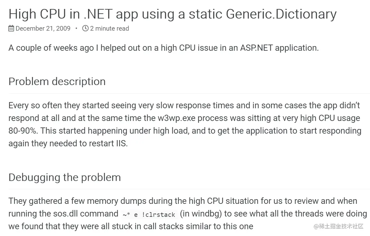 嘿嘿,还真的有这样的案例: High CPU in .NET app using a static Generic.Dictionary ,再截个图。