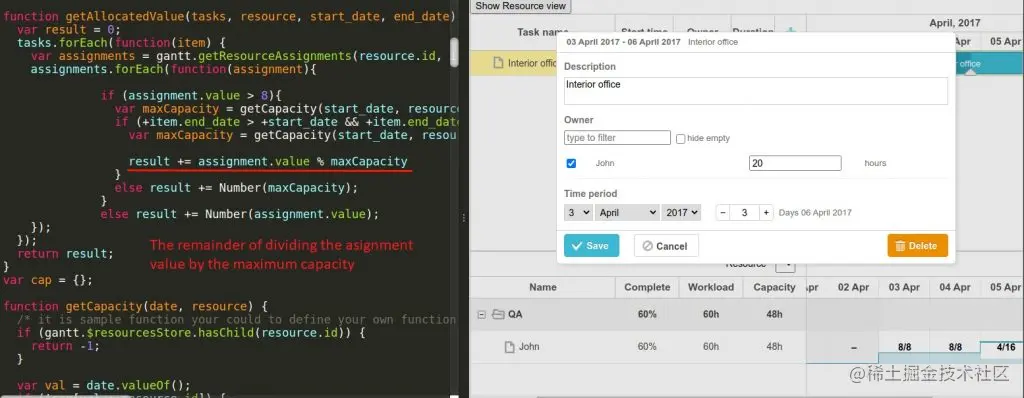 尽管Gantt组件允许显示资源加载和资源分配,但重要的是要了解计算逻辑必须由开发人员实现。但是我们的库为通过公共API进行自定义和添加自己的解决方案提供了极大的可能性。