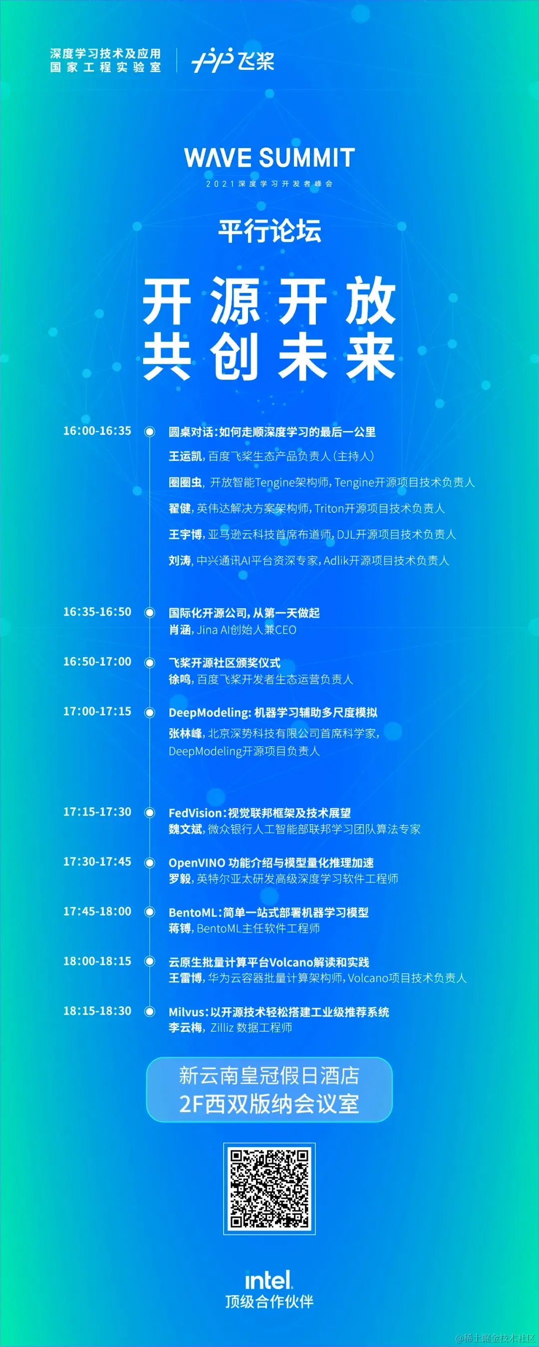 除此之外,来自DeePMD-kit的科学家将会分享机器学习与基础科研之间的交叉碰撞融合,FATE社区带来基于飞桨的机器学习生态实现横向视觉联邦以及OpenVINO部署加速、BentoML一站式部署机器学习模型、Milvus 搭建推荐系统、Volcano落地实践等精彩内容。