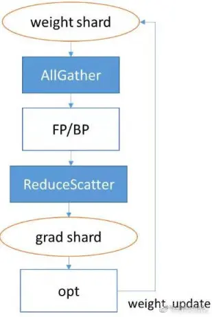 优化器模型并行将优化器涉及到的参数和梯度切分到多台设备上。以 Adam 优化器为例,其内部可能有多份与权重同等大小的「动量」需要参与计算。在数据并行的情况下,每个卡都拥有完整的「动量」,它们在每个卡上都重复计算,造成了内存及计算的浪费。通过引入优化器并行,每个卡只保存权重及「动量」的切片,能降低每个卡的静态内存及提升计算效率。