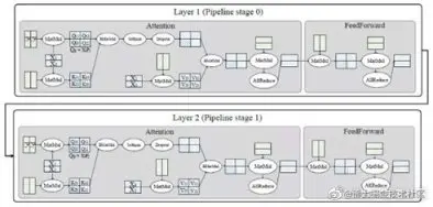 在盘古 2000 亿模型中,MindSpore 将 64 层(layer)划分为 16 个 stage,每个 stage 包含 4 层。在每层中,利用算子级并行的方式对张量进行切分。
