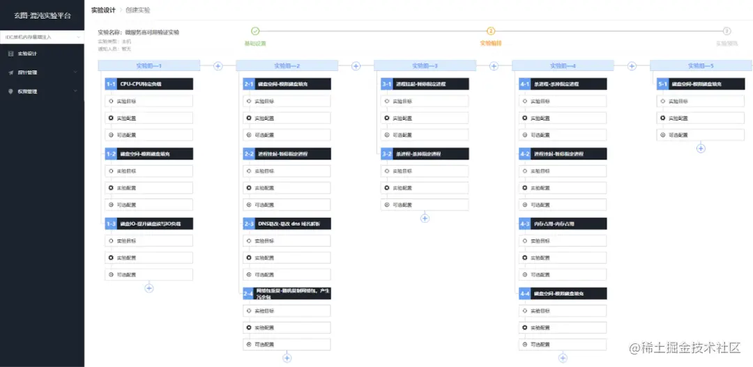 这里就举一个在腾讯互娱团队内部的平台执行实验的例子,这里是实验编排环节,这里的编排同时支持并行的和串行的,可以在一次实验里把所有需要执行的故障全部都编排好,多个服务并行去执行混沌实验。