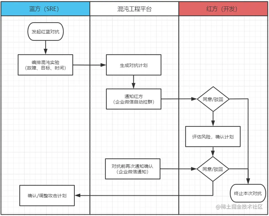 另外,混沌工程团队发现即使提供了便捷的混沌实验平台,让开发同学自己左右手互搏也是很枯燥的,很难持久执行。为了将混沌工程落地,腾讯互娱设计了红蓝对抗的玩法,运维同学会经常性的选择某些服务发起混沌实验,检验开发同学的服务是否具备容错能力,并把演练结果公示出来。开发同学为了避免出现服务漏洞被广而告之,会非常积极的去提前做混沌实验,提前解决掉隐患,形成比较好的良性循环。
