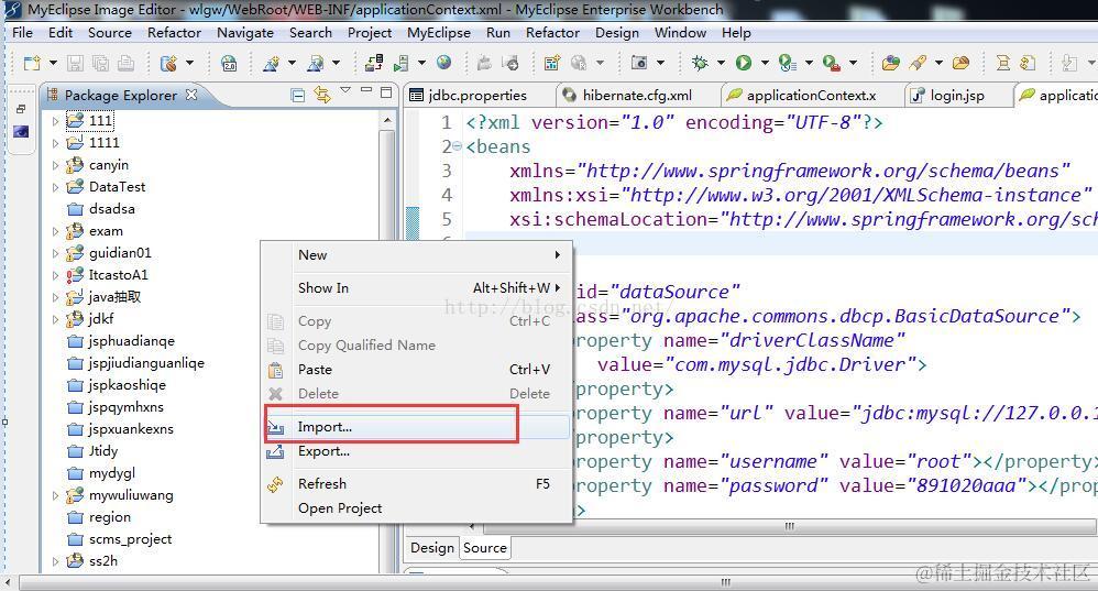 1,打开Meclipse,在左面的区域点击右键,选择import键,
