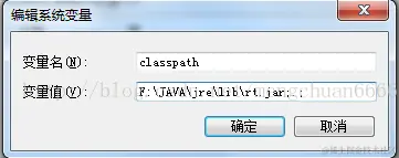 变量值: F:\JAVA\jre\lib\rt.jar;.;