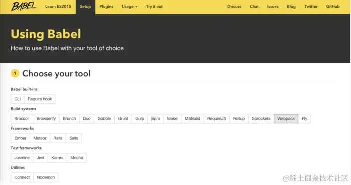Babel是一个广泛使用的ES6转码器,可以将ES6代码转为ES5代码,从而在现有环境执行。大家可以选择自己习惯的工具来使用使用Babel,具体过程可直接在Babel官网查看: