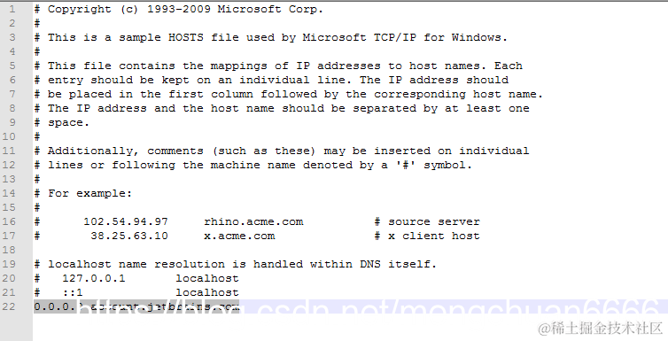 需要在host文件的尾部添加: