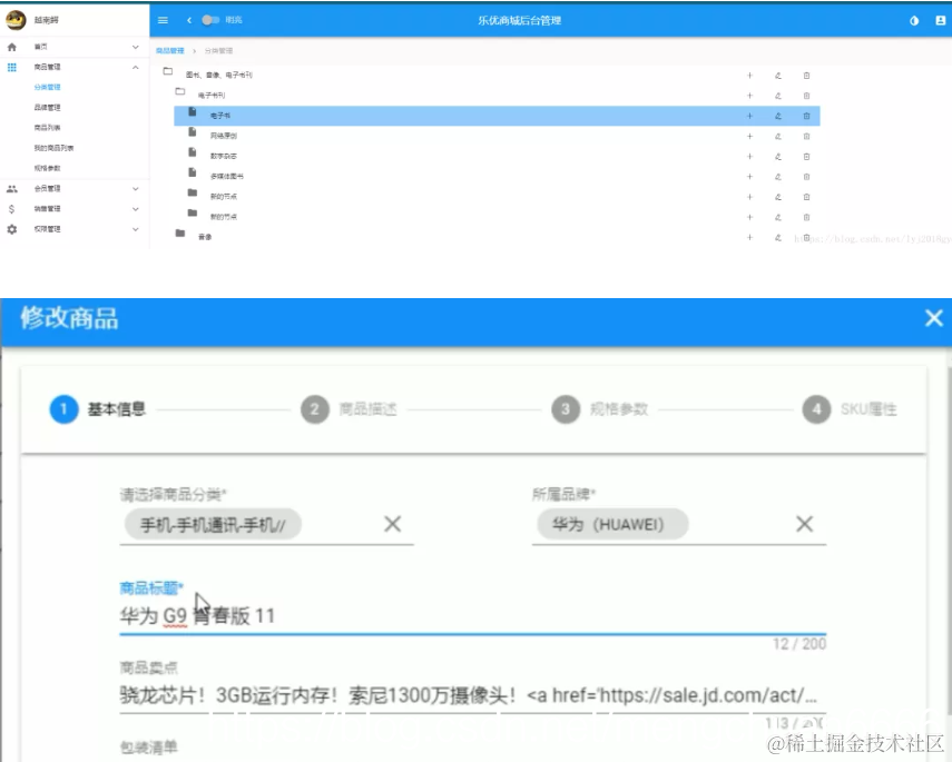 商品管理,包括商品分类,品牌,商品规格等信息的管理