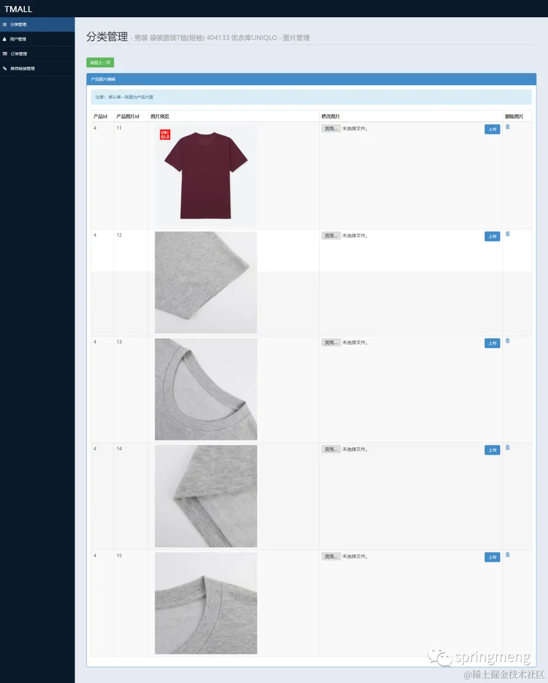 - 后端页面: 后台所需要用到的页面,从名字很好区分功能,其中 index.jsp 只有一行代码用于跳转