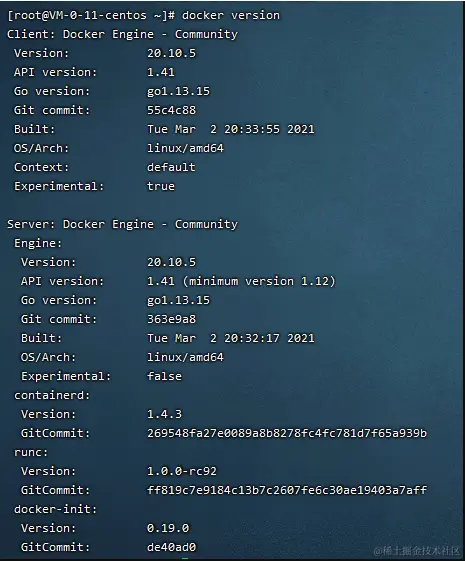 # 6、使用docker version 查看是否安装成功